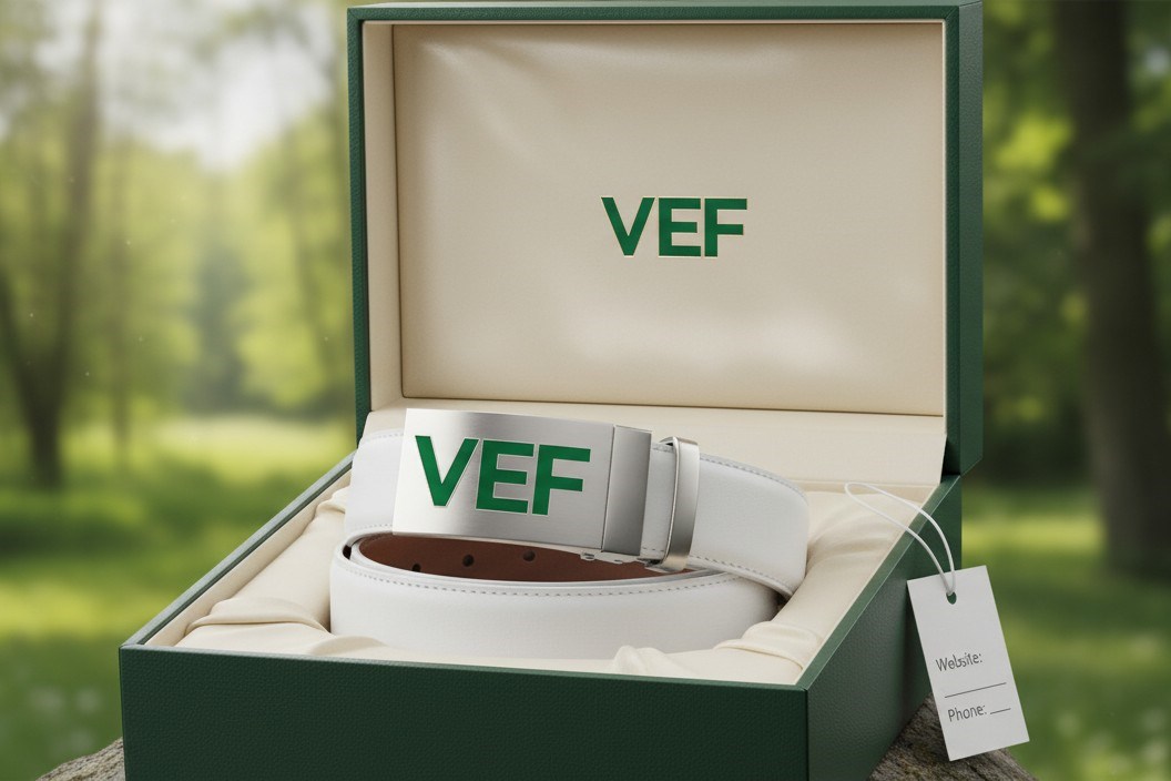 Thắt lưng được chế tác từ Da Thật hoặc Da Công Nghiệp cao cấp màu trắng sang trọng, phù hợp với trang phục golf, tennis hoặc business casual. Chi tiết khóa kim loại sáng bóng, thiết kế hiện đại, dễ dàng điều chỉnh. Logo VEF được in/khắc tinh tế trên thân khóa hoặc thân dây, tạo dấu ấn thương hiệu riêng biệt.